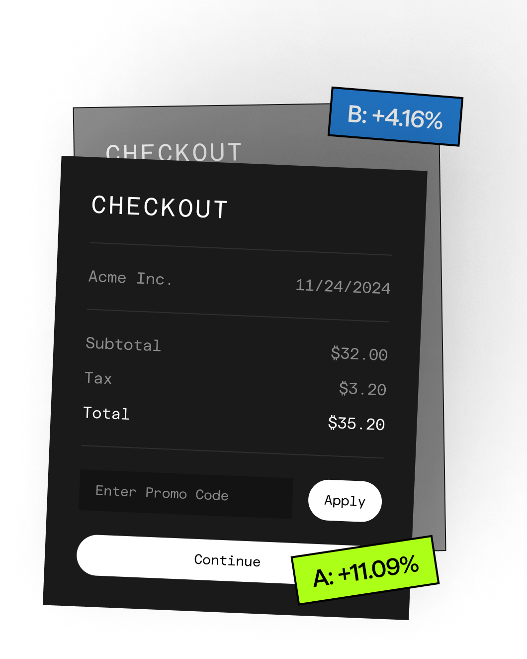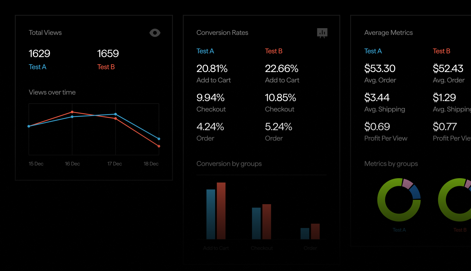 From prices to shipping thresholds, landing pages to checkout flows, run every test your store needs without switching between multiple platforms